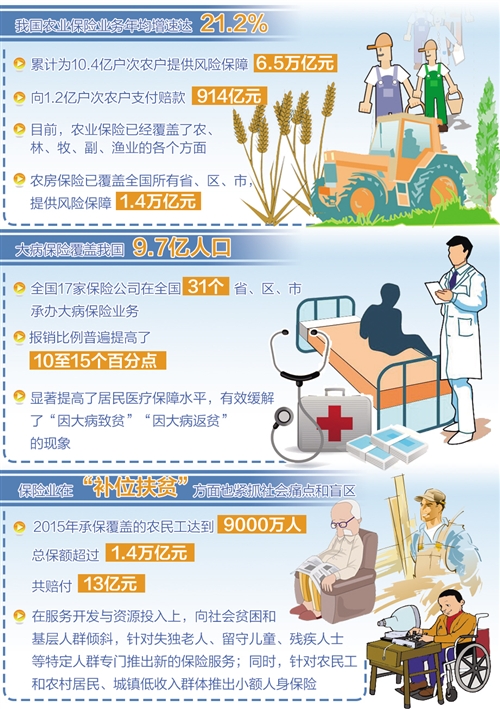 “‘十二五’期間,農業保險條款得以全面升級,保障水平和賠付標準都快速提升。這些舉措保障了農業保險發揮支農惠農的作用,讓廣大農戶受益。”首都經濟貿易大學保險系教授庹國柱說,“今年的中央一號文件提出,鼓勵金融機構積極利用互聯網技術,為農業經營主體提供小額存貸款、支付結算和保險等金融服務。這會進一步提高投保、理賠服務效率,并可在更廣的范圍內提升農業農村發展的動能”。